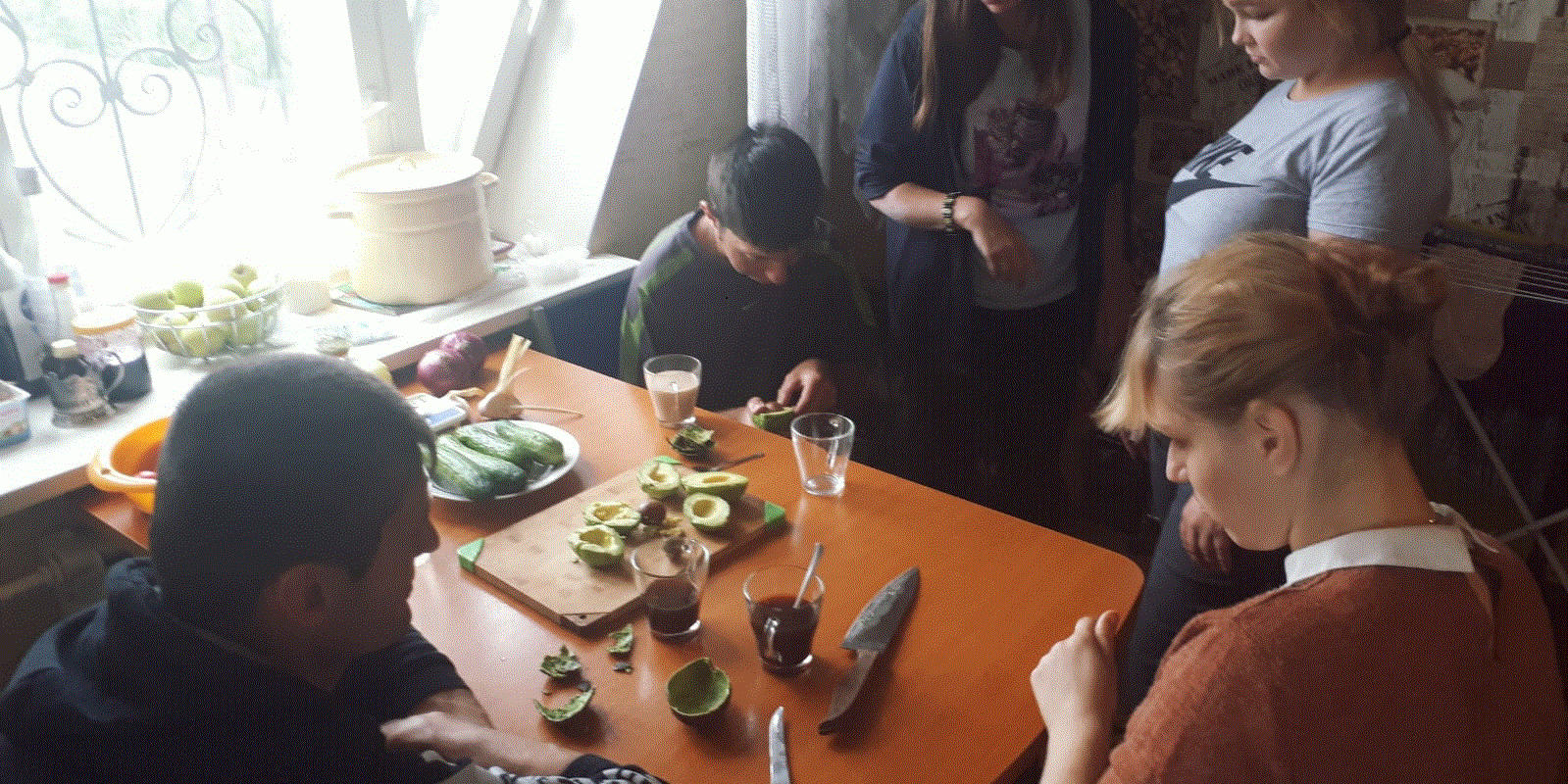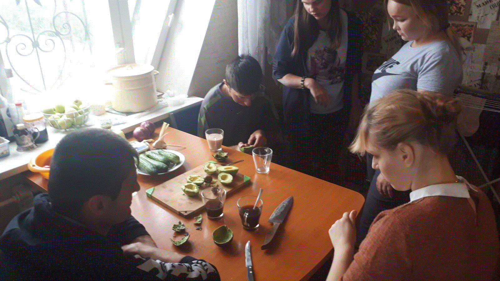 Avacados are not very traditional in Russia. Only Alyona even knew what they are called (because she lives at the social flat and has seen them many times before. Guacamole is also a bit spicy for the average Russian palate, so got very mixed ratings among the tasters (very good or very not good)!